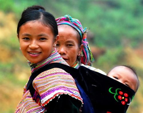 | Bà mẹ trẻ xinh xắn địu con ra chợ - Ảnh: H.T.D. |