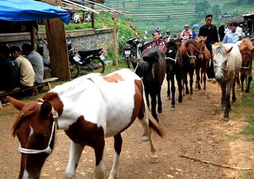 Chợ họp từ đường nhựa kéo dài đến một thung lũng với năm khu vực mua bán: gia súc, quần áo vải vóc, nhu yếu phẩm, thảo quả, rau củ và các sản vật địa phương. Có những người đến chợ chỉ với một túi ớt, vài trái bí, mướp hay một nhúm rau vừa hái sau vườn nhà, đơn giản bởi họ đến chợ phiên không phải chỉ để buôn bán mà là thói quen, niềm vui, là những mong ước bình dị của bất cứ ai sinh sống ở vùng núi cao vực sâu này.