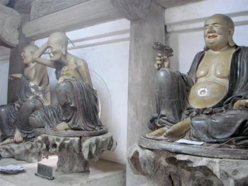 Nhưng du khách vãn cảnh chùa vẫn thích diện kiến 16 pho tượng các vị La Hán. Mười sáu vị, kẻ đứng người ngồi; vị ngước mặt lên trời hướng vào mây khói, người tì cằm nghếch môi cười, vị vẻ mặt trầm tư, đăm chiêu khắc khổ...